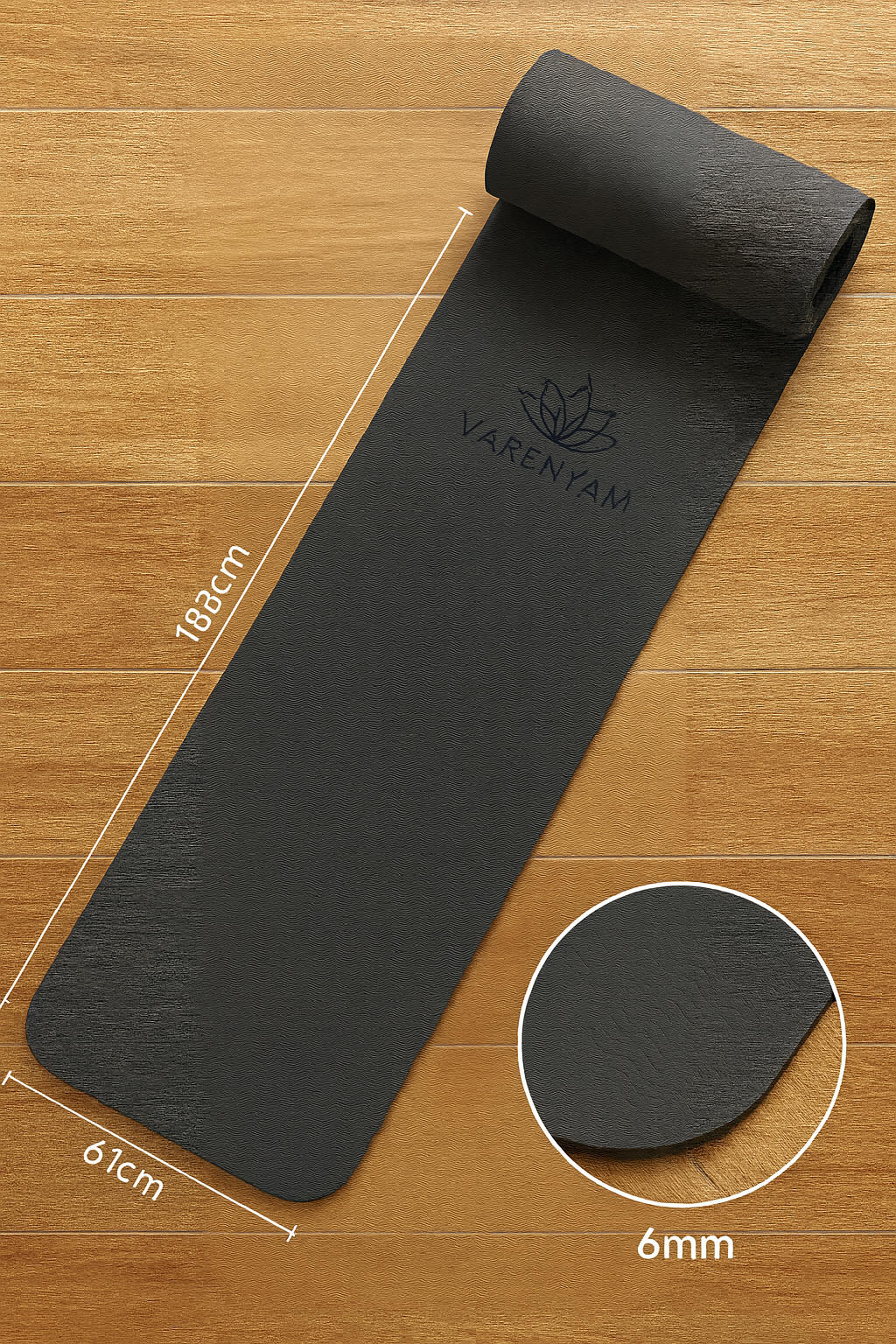 premium yoga mat India, eco-friendly yoga mat, non-slip yoga mat, TPE yoga mat, thick yoga mat for joints, Varenyam yoga mat, best yoga mat for home practice, yoga accessories India